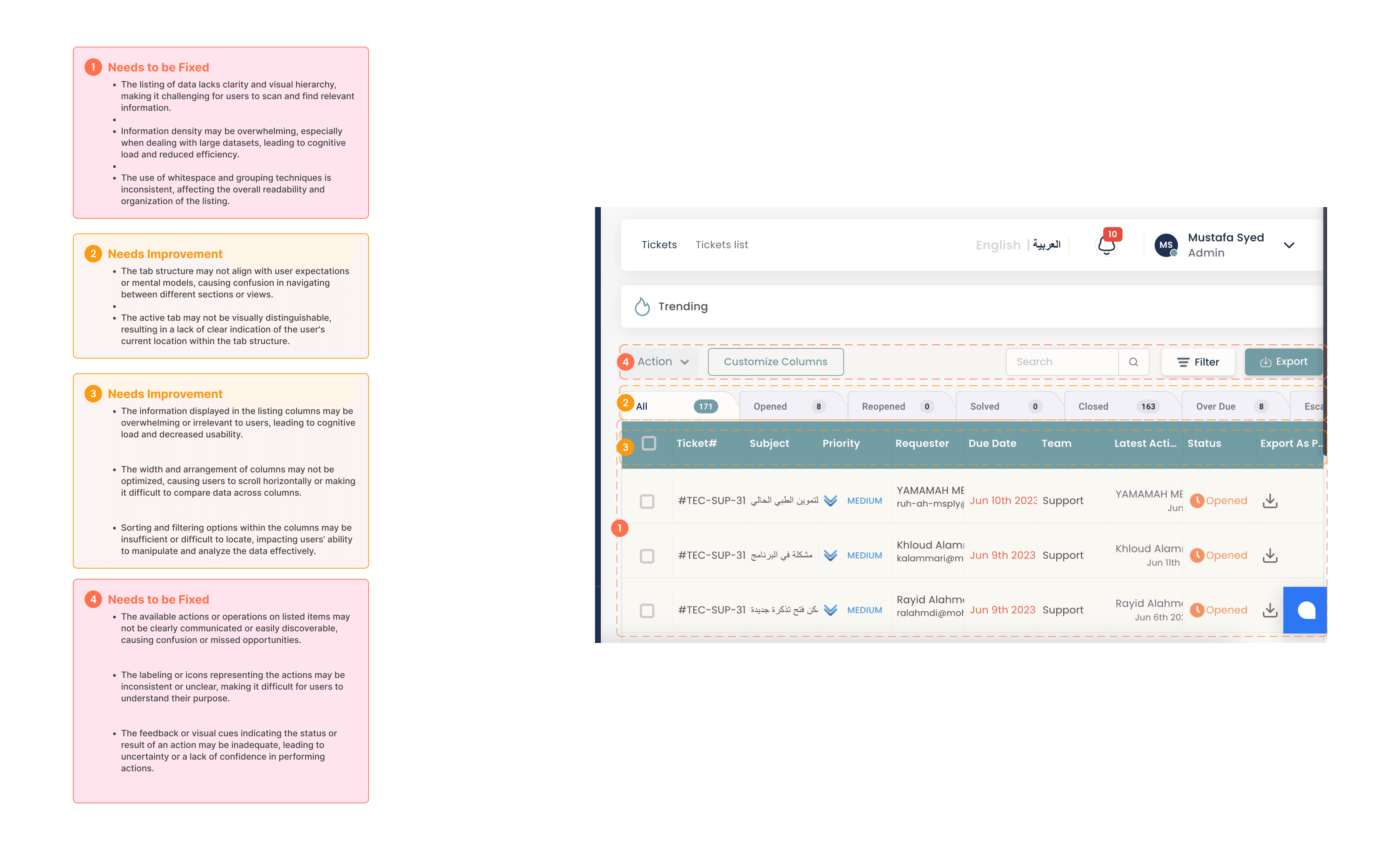 Keeping in mind all the issues identified in the usability audit and our sessions with the users I worked on the redesign of the Ticketing platform.