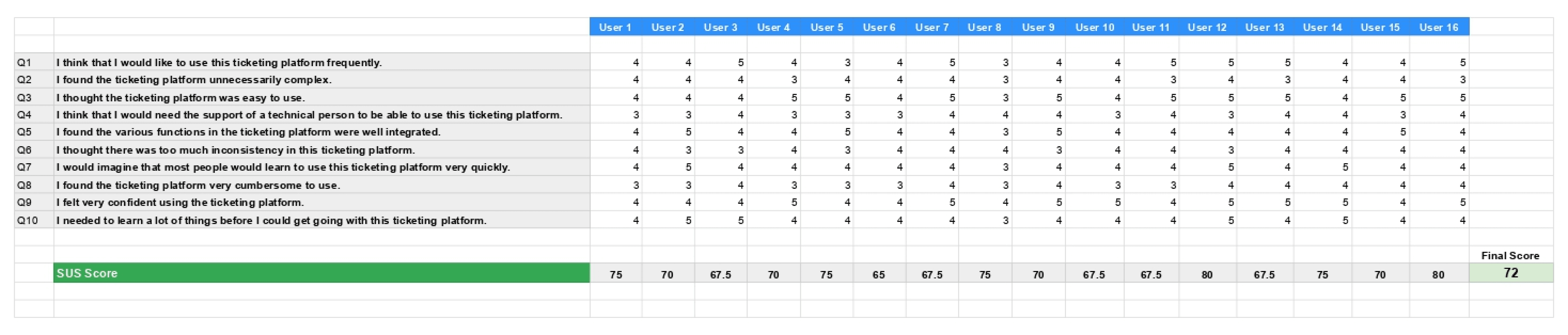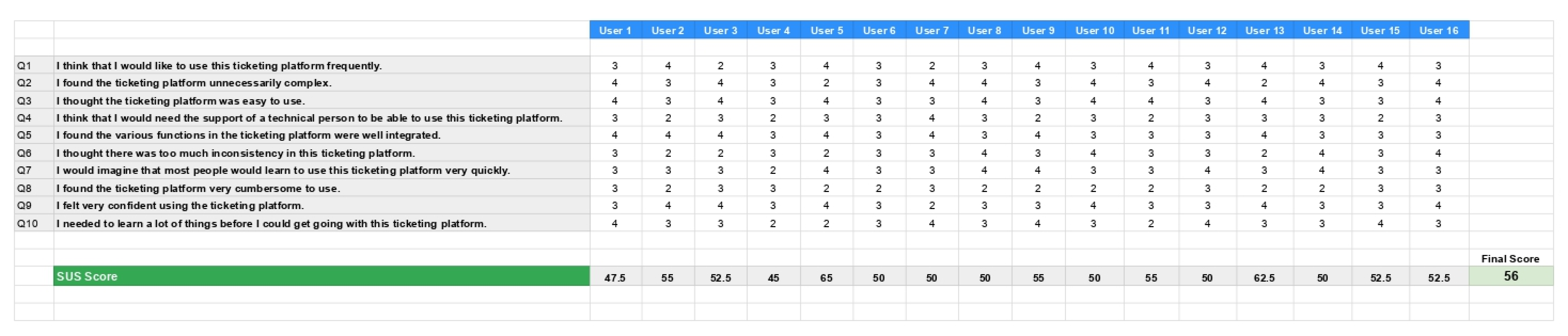 Survey results from the System Usability Scale. Anything below 68 is considered below average.